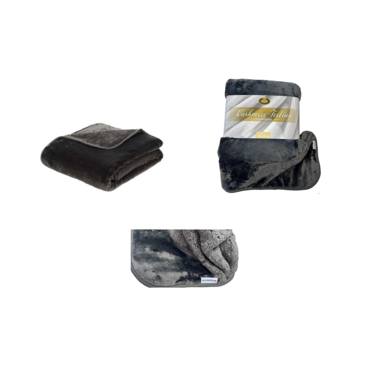 Kuscheldecke in anthrazit, weiche Cashmere-Feeling Qualität, dormakaba Logo als Label aufgenäht
